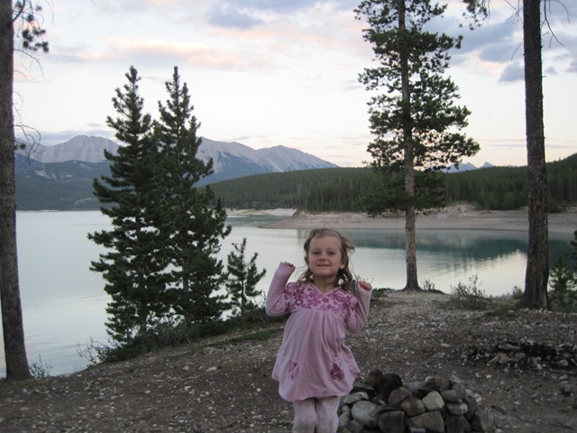 When we stopped to make dinner last night we met an incredible couple, Mary and Gordon, who were on their way back home to Edmonton after having their four grand kids and their friends for three weeks in their truck trailer. Mary was so friendly that Brooke was sad when they started to go, and whispered in my ear. They wanted to know what she said. She said she wanted Mary to play on the playground with her. Mary, who had grandma shining from every bit of light around her, didn’t seem so confident about climbing the equipment or sliding down the slides, but she did it for a three year old she had only just met. Brooke and I were very grateful for the ten minutes Mary spent playing “princess castle” with Brooke while Scott was busy making dinner and I was busy feeding Cody.
