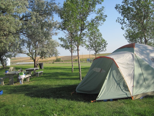 The day was spent mostly driving on Route 2. We stopped for lunch in Havre, Montana and also looked for Wifi. Then we stopped again in Glasgow for Wifi and a playground break. Cody was insanely sticky and gross from climbing in the tubes and along the floor, but he had a great time and even worked in a few more steps. We also had a little bit of Wifi. It was very slow, but it gave the kids more time to work out the wiggles. Scott had picked Wolf Point for a stopping point since it was about 300 miles from Shelby and it also had a camp ground, at least according to our 2002 Wal-Mart map. Fortunately and unfortunately the camp ground was non-existent and in its place was a day use boat launch, picnicking, and horseshoe park. Once again, only because Scott was brave enough to talk to people we discovered that they let you camp at the city pool/ park if you ask. Apparently our stop was along the Lewis and Clark Historic Trail and is often traveled by bike packers looking for a place to stay. We arrived at the pool at 7:15 and they closed at 8:30.