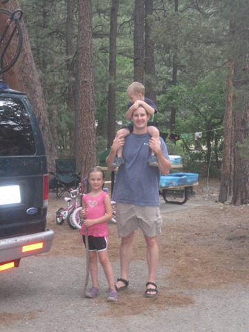 I noticed that we had a fatality on our way to the campground. I didn’t want to add the picture, but Scott thought it was odd enough that it should be noted. Shane, our camping neighbor, mentioned to the kids that if they put a fallen pine cone in water it will close back up again. We tried it and the kids loved it. Consequently we had to have bags full of swimming pine cones! Westren was a pro at finding fun walking sticks on his many hikes. He found the saxophone stick on our last hike of the evening.
