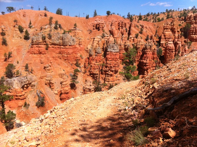 After dropping Scott off at the Thunder Mountain Trail I took the kids up to the paved trail. I thought it might be wise to jog rather than ride my bike. Cody cried one and a half minutes into the ride. I pushed us ten minutes one way and then had us turn around. Brooke was Miss Speedy on the way out, but on the way back she turned into a snail. I was pushing Cody as I jogged the way out and back, but literally one minute after Brooke called Cody “cry baby” on the way back, Brooke was crying. So I pushed one kid and then the other and sometimes both at the same time. It was only a twenty-five minute jog, but I had the added bonus of pushing the kids and running full speed to catch up on the down hills. I know where we live in Illinois is flat, but it takes just a short jog on a “flat” trail out West to remind us that you really can’t understand flat until you come to Illinois.