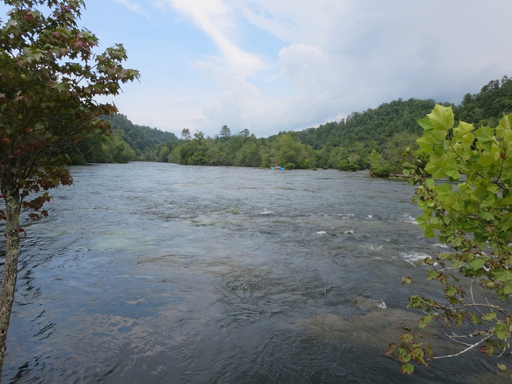 It took us two and a half hours to get down the river today. The river is dam released. When we took off on our shuttle from the Hiwassee Outfitters at noon the newly released water had still not reached the outfitters. However, the water was rolling at full level when we put out into the river.
