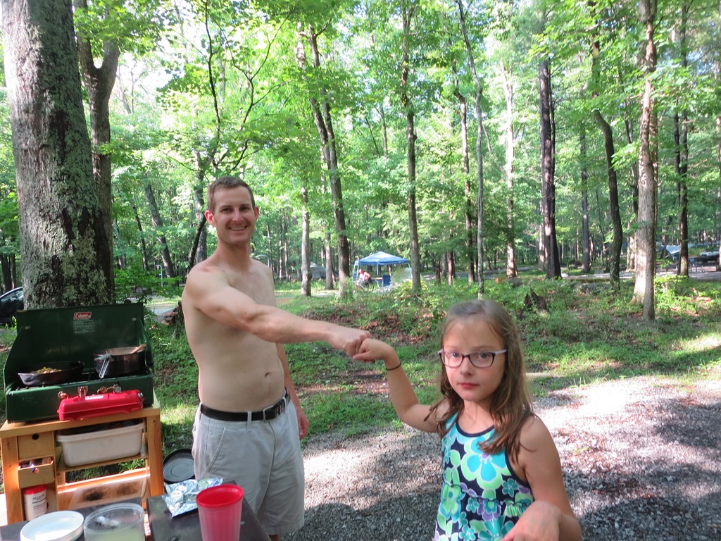 We finally arrived at the campground at 5:33. Brooke was adamant about setting up the tent all on her own. She did it! Fist bump!