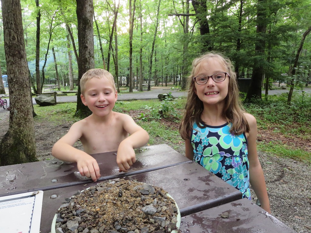 We had to put the cooler in the car due to the National Park rules and the bears. The kids served me up some mud and rock pie for dessert. Mmm.