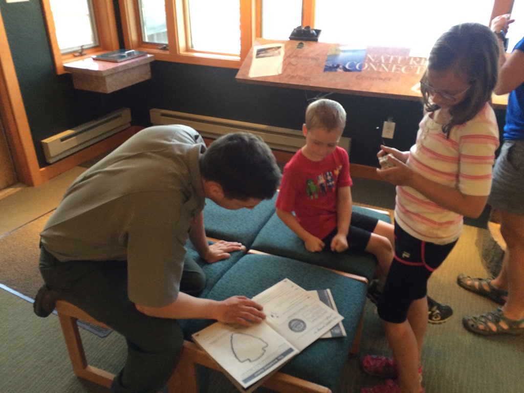 We arrived at 4:30pm at Voyageurs National Park, the second time, in a different location. The first visitor’s center at Ash River was closed on Tuesday and Wednesdays. We had almost given up on trying to get to the Voyageurs National Park Junior Ranger badge. Scott was searching for a place to cook up lunch when we ran into a National Park employee mowing the lawn. He assured us that the other visitor’s center at Kabetogama Lake wasn’t far. So after already traveling an hour and a half we hopped back on the road in search of the open visitor’s center. We watched two videos, explored the exhibits, and completed the necessary pages for the badge all by 4:55. The older ranger encouraged us to spend more time on the booklets and mail them in on our own time. The younger ranger was willing to spend the extra time with us and have an in depth conversation about the material and answer the questions we had. The younger ranger when we arrived was also the one trying to answer the phones, turn on the movies, help multiple couples with questions, and get us our junior ranger books. He went above and beyond. He made our three hour venture to meet Brooke’s desire for another National Park more than worth it.