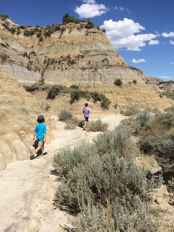 What do you do when you are camping in the middle of nowhere and its 97 degrees? Go for a hike! After a quick trip to the visitor’s center to get the junior ranger books and watch the park video we headed out on the Prairie Dog Trail. The bison pies were bigger than Cody’s head and quite fresh.
