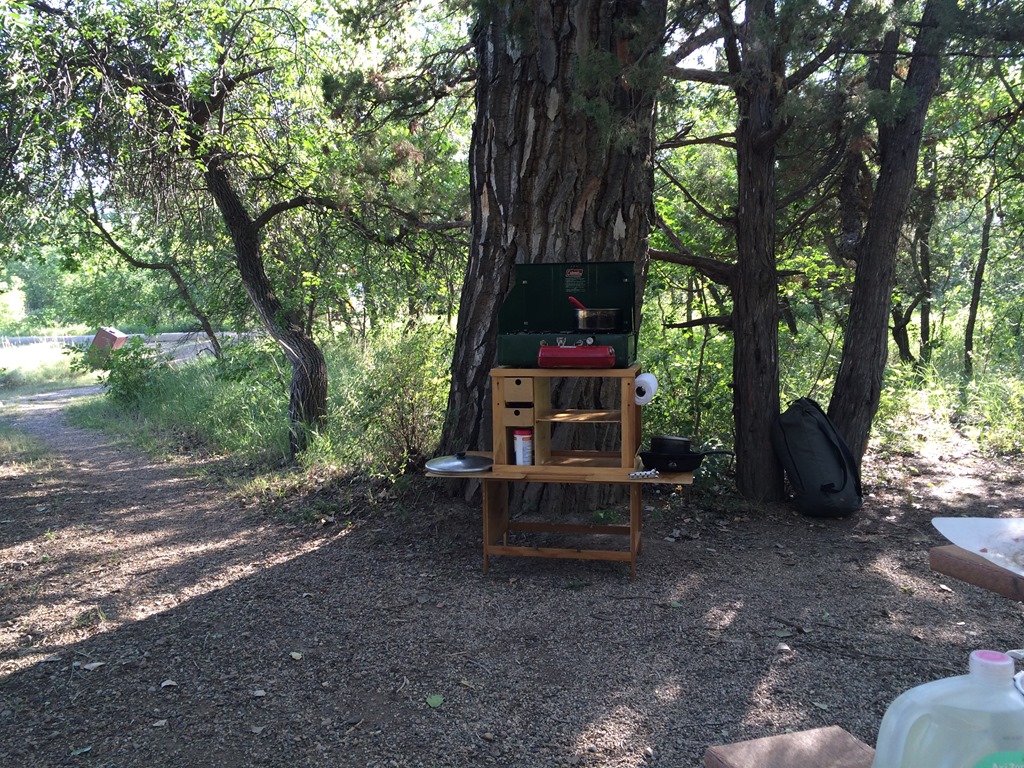 We were greeted to the park by an especially grumbly bison who was originally in the road, but decided to move over for us. We found the perfect campsite and had some quesadillas. The 97 degree temps had us shedding shirts and spraying water.