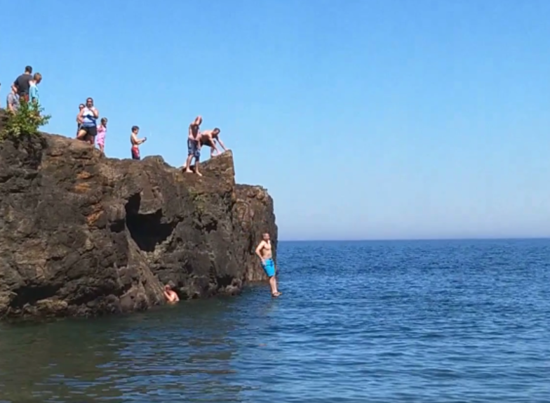 After the canoe ride Scott decided he needed to join the group of people jumping off the rock into the water.